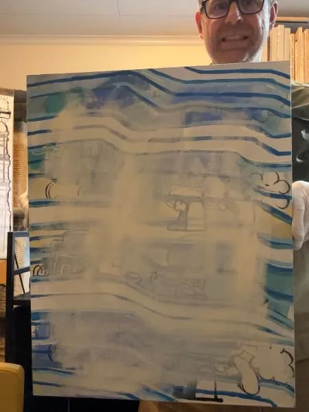 LLOG BLOG Reader with “Drink ‘N’ Dawg” Painting.