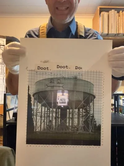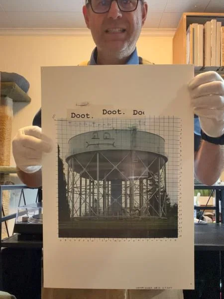 “Water Tower Grid” Photo print w ink pen.