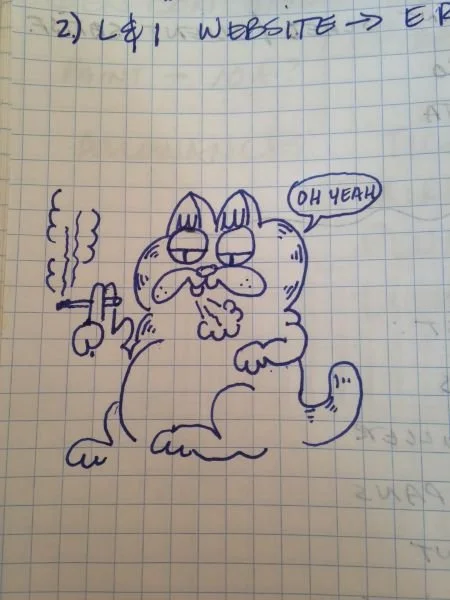 “Crappy Garfield.” Sketch made w ball point pen, during an important work meeting.